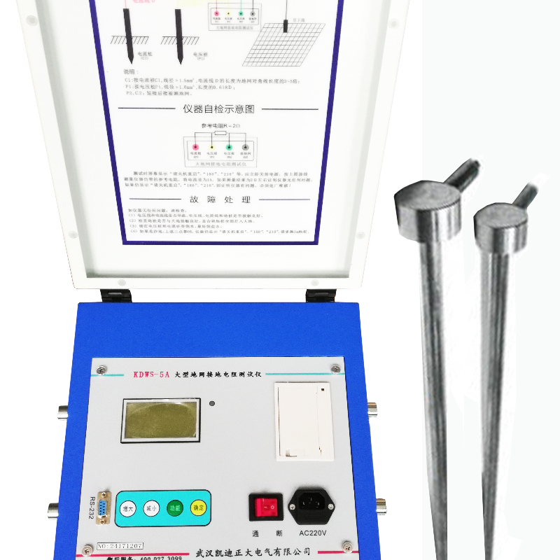 KDWS-10A型大型地網(wǎng)接地電阻測試儀,可測變電站地網(wǎng)(4Ω)、水火電廠、微波站(10Ω)、避雷針(10Ω)多用機(jī)型,采用了新型變頻交流電源,并采用了微機(jī)處理控制和信號處理等措施,很好的解決了測試過程中的抗干擾問題,簡化了試驗操作過程,提高了測試結(jié)果的精度和準(zhǔn)確性,大大降低了試驗人員的勞動強(qiáng)度和試驗成本。