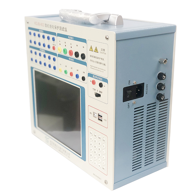 KDJB-802繼電保護(hù)測(cè)試儀采用可單機(jī)獨(dú)立運(yùn)行,亦可聯(lián)接筆記本電腦運(yùn)行的結(jié)構(gòu),主機(jī)內(nèi)置高速數(shù)字信號(hào)處理器微機(jī)、真16位DAC模塊、模塊式高保真大功率功放,自帶大屏幕液晶顯示器以及靈活方便的觸摸屏控制器。具有操作功能強(qiáng)。體積小,精度高。既具有大型測(cè)試儀的性能和功能,又具有小型測(cè)試儀小巧靈活、操作簡(jiǎn)便、可靠性高等優(yōu)點(diǎn),性能價(jià)格比高。