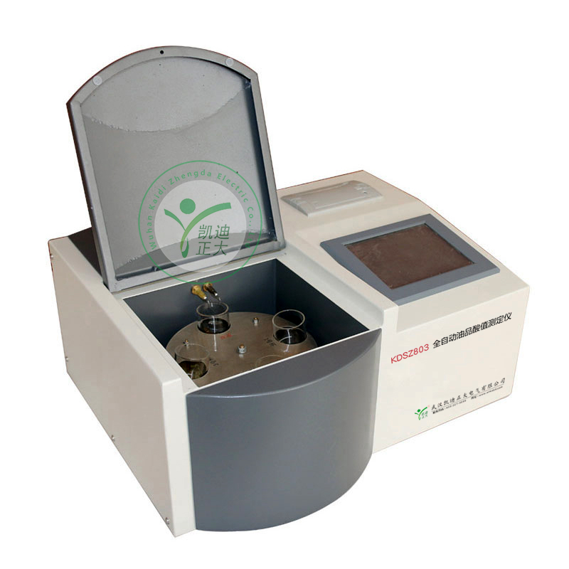 KDSZ-803D全自動油品酸值測定儀采用中和法原理,于常溫狀態下,微機控制自動完成加液、攪拌、滴定及終點判斷。采用觸摸式液晶屏選擇所有工作參數,人機對話界面簡潔友好,操作方便,油樣平均分析周期為2分鐘左右。可分別顯示多至35組的測定結果,并可打印輸出多項與測定相關的參數。
