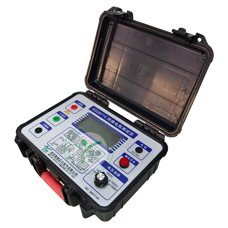 KD2671C絕緣電阻測試儀由中大規模集成電路組成。本表輸出功率大,短路電流值高,輸出電壓等級多(有四個電壓等級)。工作原理為由機內電池作為電源經DC/DC變換產生的直流高壓由E極出經被測試品到達L極,從而產生一個從E到L極的電流,經過I/V變換經除法器完成運算直接將被測的絕緣電阻值由LCD顯示出來。