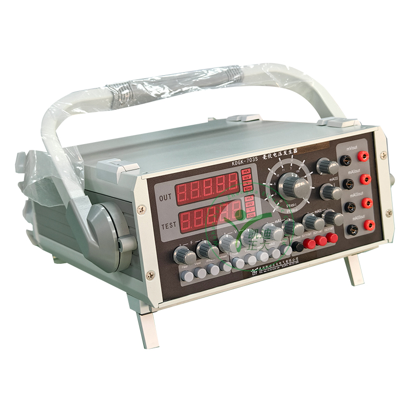 KDGK-703S便攜式綜合校驗儀(毫伏發(fā)生器)是一種集數(shù)顯式電壓、電流、頻率標準信號源、Pt100 鉑電阻溫度模擬標準信號源、數(shù)字式電壓、電流、頻率測量功能于一體的高精度、高分辨率、多用途的自動化儀表校準儀器。