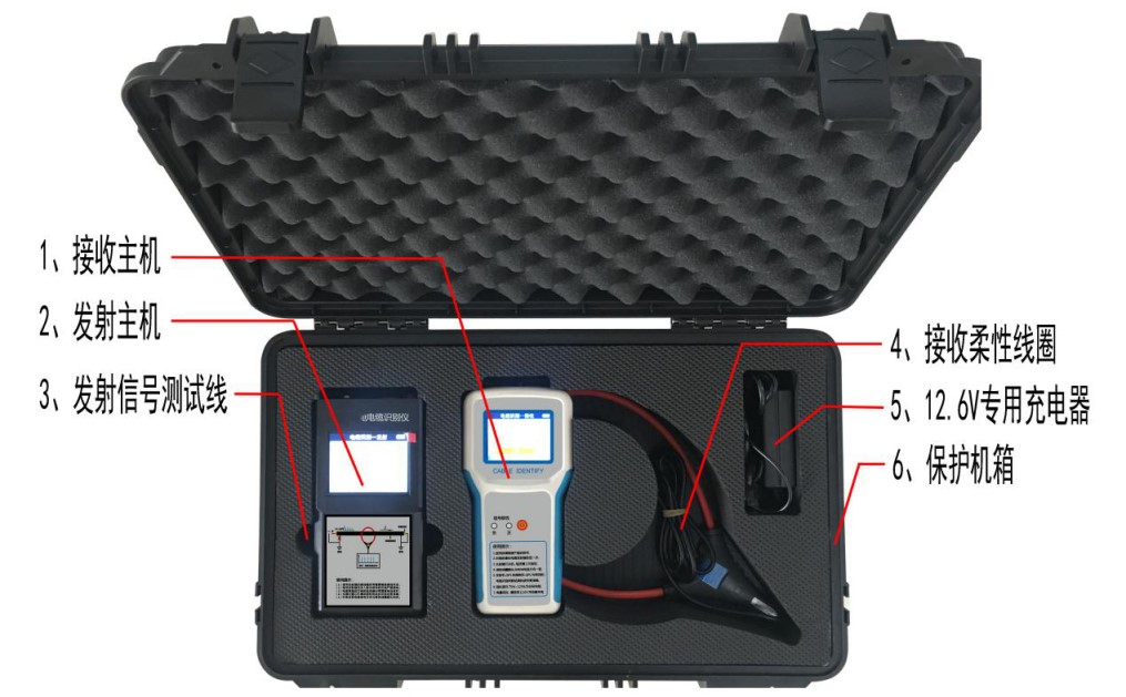 2、該電纜識別儀與常規(guī)的識別儀不同,采用了最新的通信技術(shù),在發(fā)射端采用單片機技術(shù)對發(fā)射信號進行編碼、功率驅(qū)動,將信號耦合到電纜上;接收機中的單片機對接收的相位編碼信號解碼和相位識別。根據(jù)目標電纜上的信號相位特征的少有性將目標電纜從一大束電纜中識別出來。因此工作性能可靠,對超長電纜也能做到準確判別,是一種輕小型、緊湊型、便攜式儀器。適用于各種類型的高低壓動力電纜。