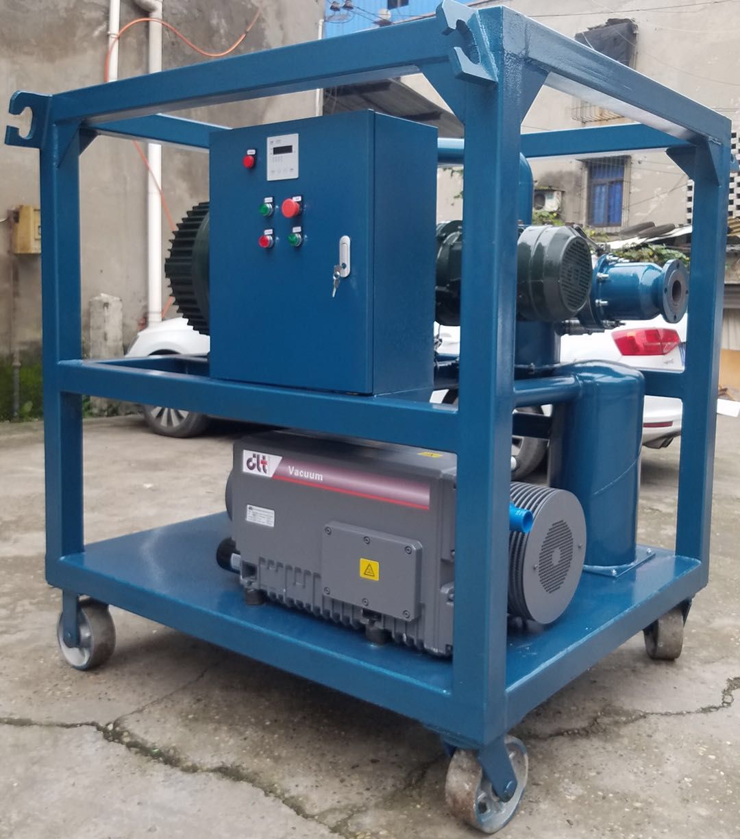 SF6氣體抽真空充氣裝置:KDQC-33抽氣速率≥45L/s;風冷手推移動式,前級真空泵(抽氣速率(54m3/h;)極限真空10(裝置極限)(Pa)功率2.2kW;)羅茨真空泵(抽氣速率70L/s;極限真空≤10Pa;功率0.75kW);電源三相五線制 3Φ 380V;總功率≤3kW;噪聲≤60dB(A);重量200kg;尺寸(長**高)82 cm *55 cm *115cm