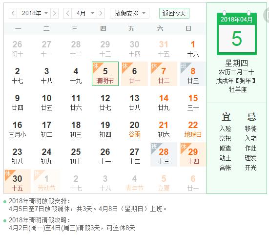 2018年清明節(jié)是農(nóng)歷幾月幾日:戊戌年(狗年)二月二十 星期四