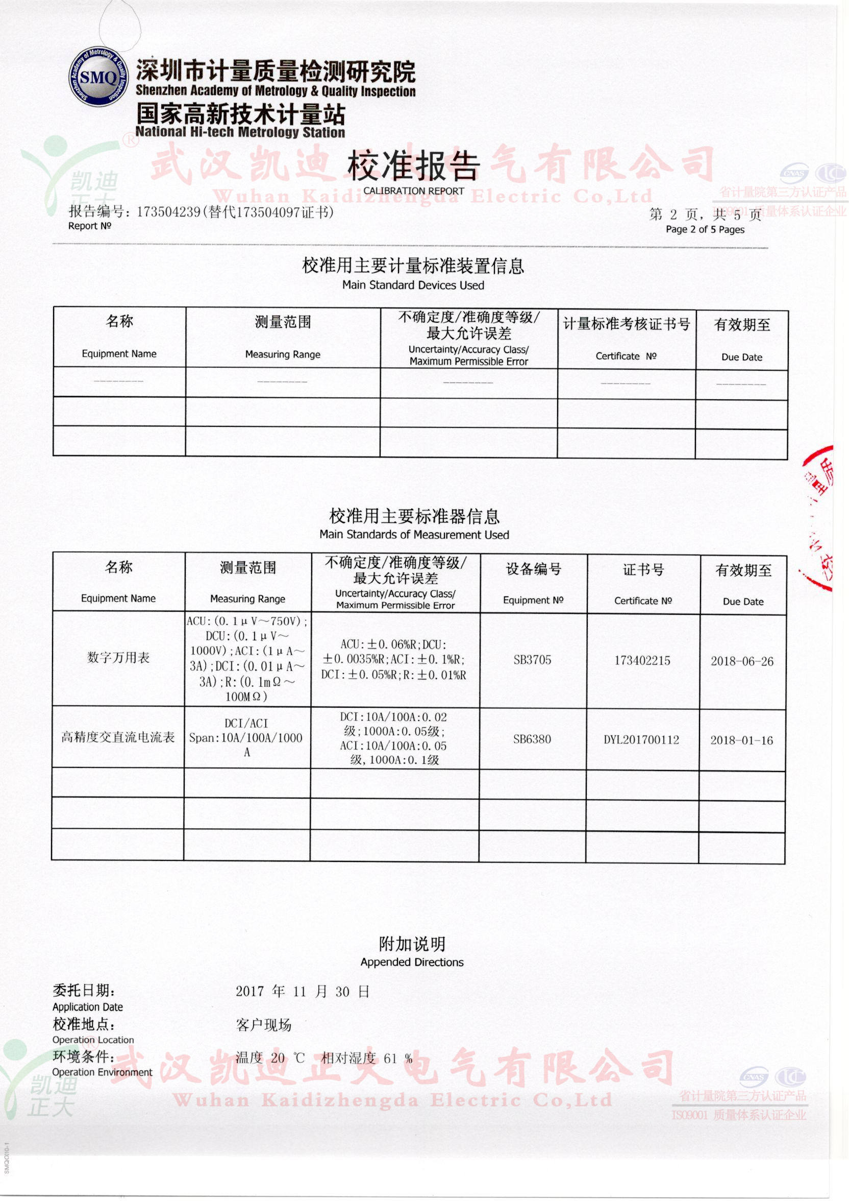 應中廣核遼寧紅沿河核電有限公司的需求,將武漢凱迪正大電氣公司生產的KDZD880(110V80A)智能蓄電池放電儀出具國家高新技術研究院的計量報告后才能使用。校準報告:173504097證書號,出廠編號:KD14122815,資產編號:500077905,校準依據:參考JJF158-2016數字多用表校準規范JJF(軍工)108-2015電池充放電測試儀校準規范。嚴格出具檢定合格報告。