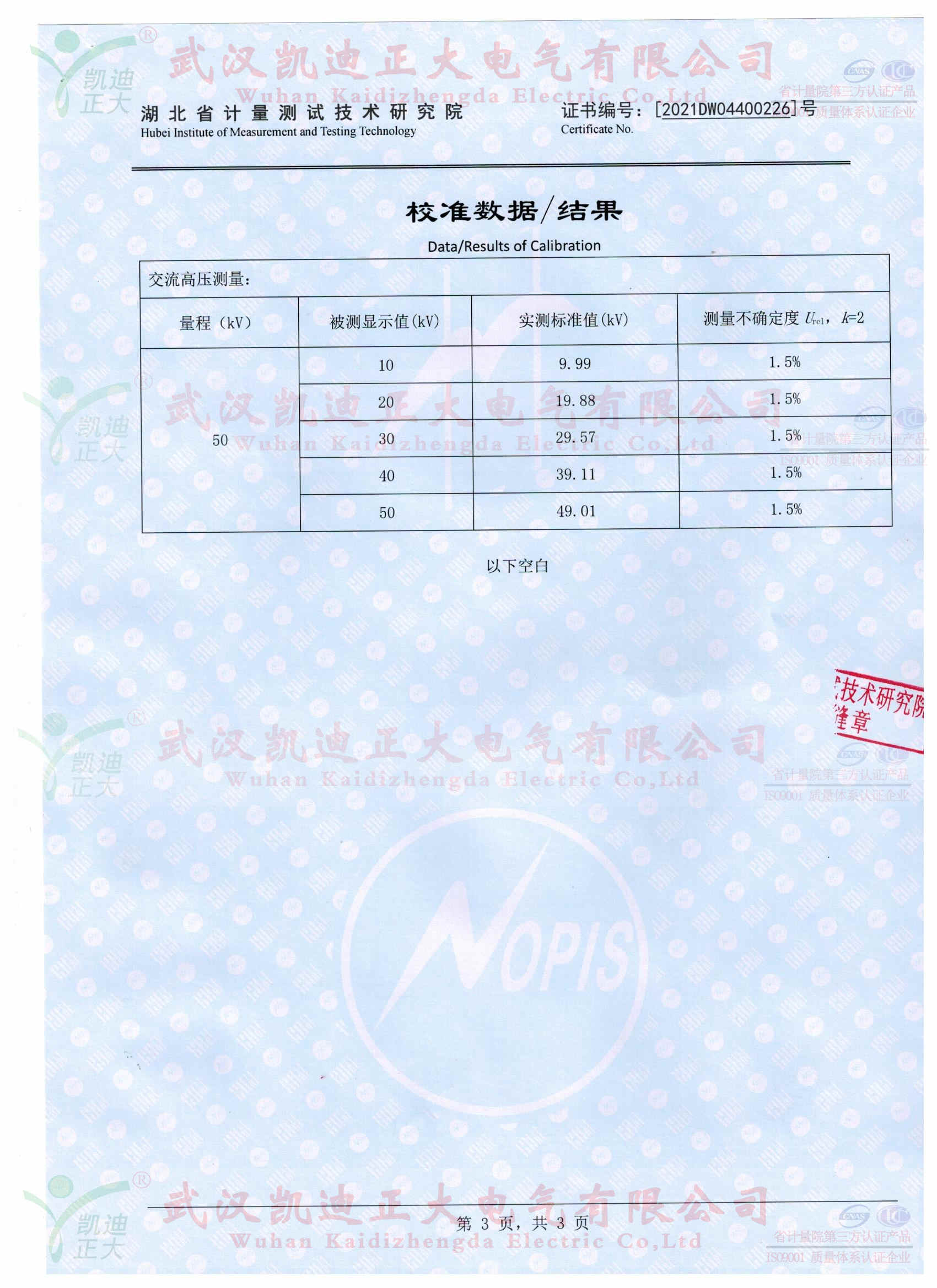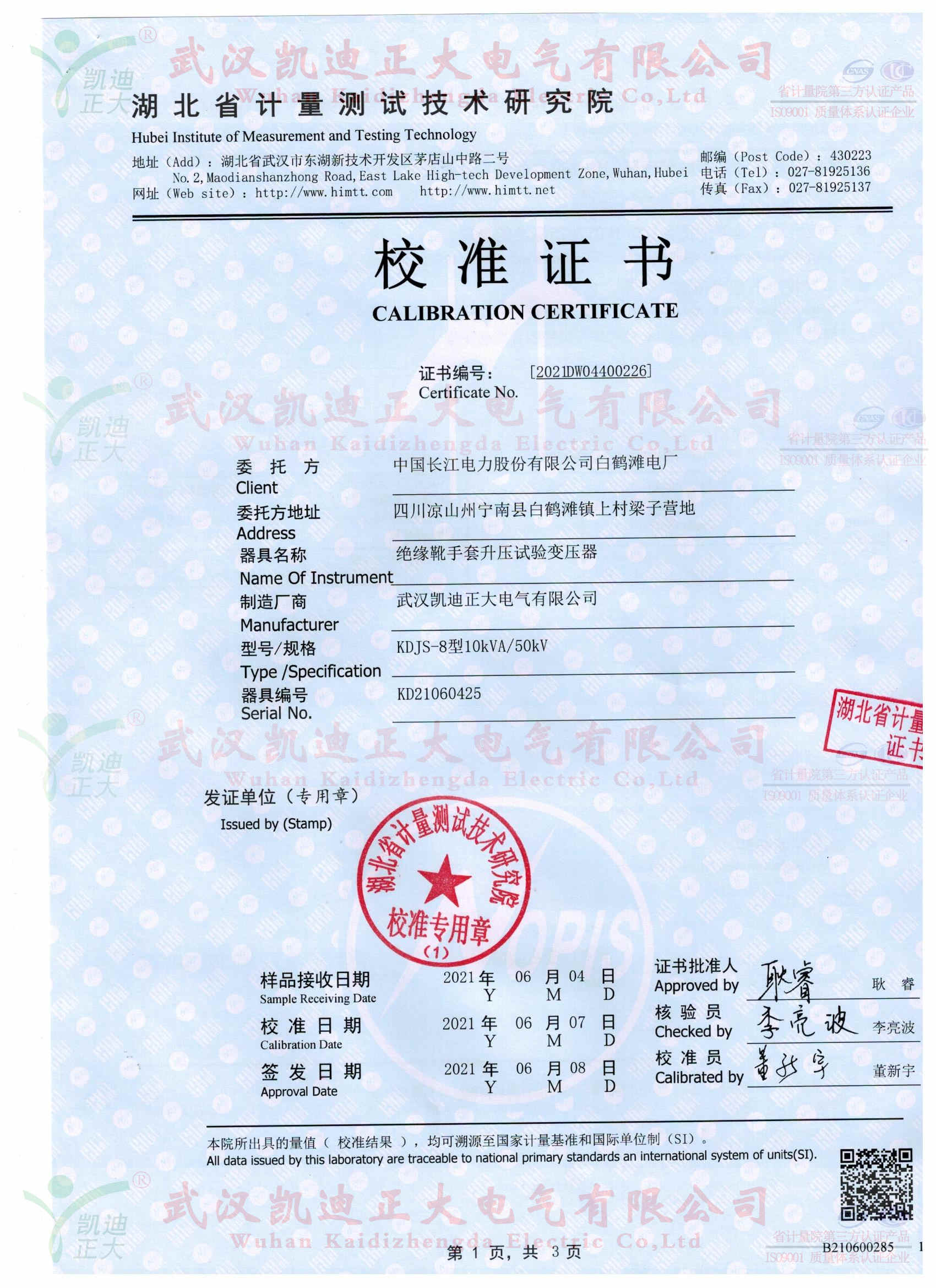 KDJS-8自動絕緣靴手套耐壓泄漏電流測試儀獲得湖北省計量測試技術(shù)研究院校準(zhǔn)證書,證書編號《2021DW04400226》,采用FRC-150M數(shù)字高壓表檢定電壓合格、產(chǎn)品各項指標(biāo)均符合國標(biāo)的要求。按《電力安全工器具預(yù)防性試驗規(guī)程》要求對絕緣鞋、絕緣手套等安全工器具進(jìn)行智能化絕緣耐壓試驗,絕緣靴及絕緣手套耐試驗周期為半年,試驗過程中不允許擊穿,同時絕緣靴絕緣絕緣手套泄漏電流不大于限定值。產(chǎn)品適用于大多數(shù)與電力相關(guān)行業(yè)。