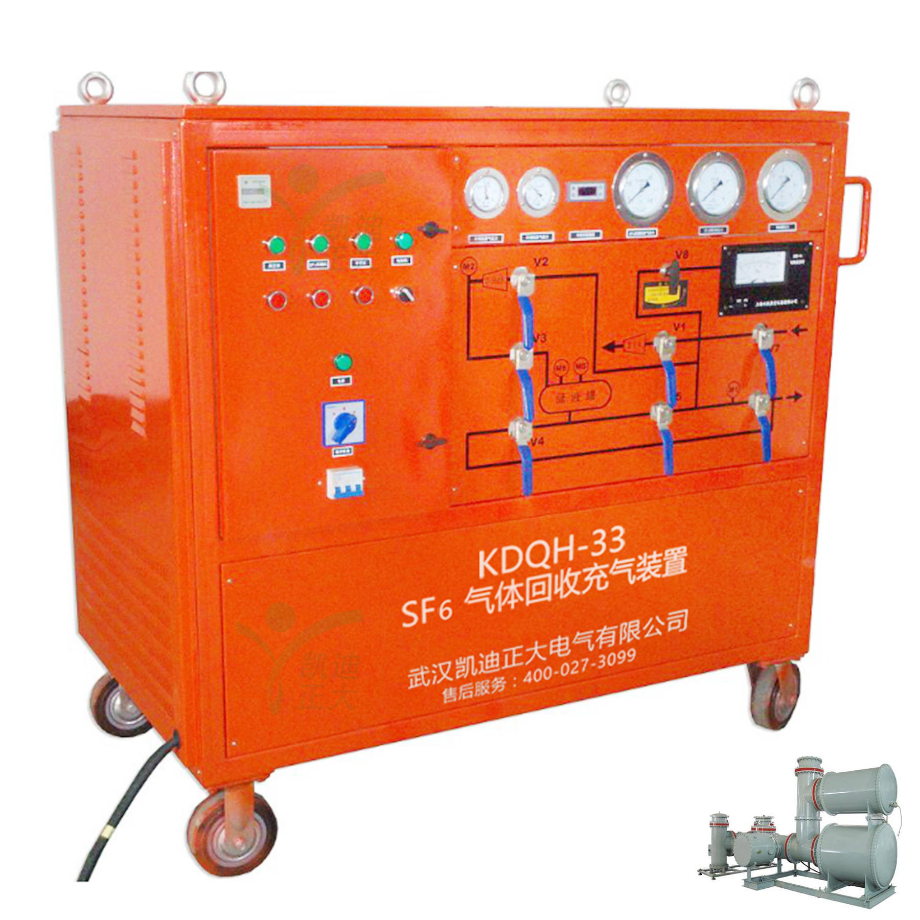 KDQC-33便攜式抽真空充氣裝置、KDQH-33六氟化硫氣體回收凈化裝置主要應(yīng)用于各供電公司、送變電工程公司、發(fā)電廠、超高壓輸變電站、SF6電器開關(guān)制造廠等部門,作為GCBP、GCBT、GIS等SF6電器產(chǎn)品在安裝、調(diào)式、檢修時使用的輔助設(shè)備。對上述電器產(chǎn)品進行抽真空、回充SF6氣體操作,同時本裝置亦可用作其它部門抽真空和回充氣體的設(shè)備。