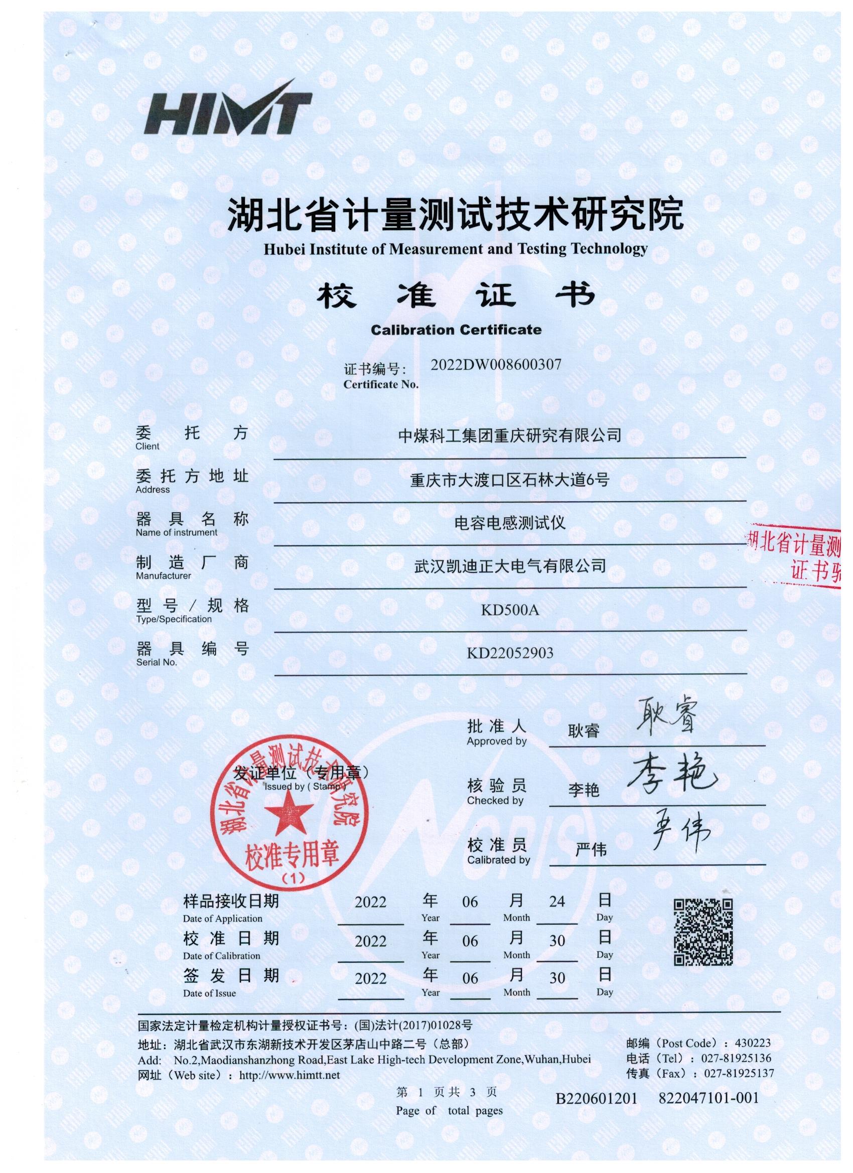 2022年6月底,中煤科工集團重慶研究有限公司在我司采購一批電容電感測試儀,并要求我方提供第三方產品檢驗證書。