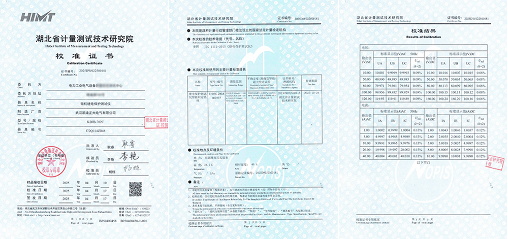 凱迪正大KDJB-702C微機繼電保護測試儀成功通過校準(zhǔn)